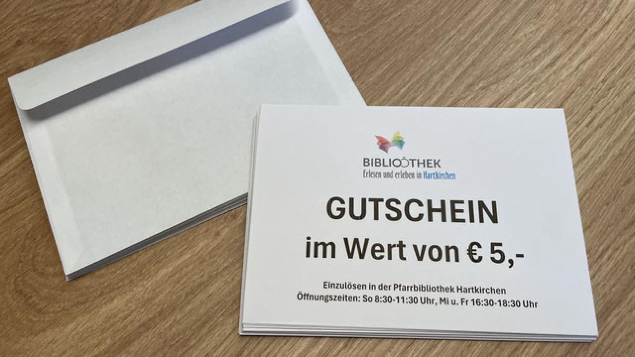 In der Bücherei gibt es die Möglichkeit Gutscheine im Wert von € 5,- zu erwerben. Macht euren Lieben eine Freude zum Geburtstag, zu Weihnachten, als kleines Dankeschön für eine Gefälligkeit oder einfach nur, weil ihr gerne Geschenke macht.